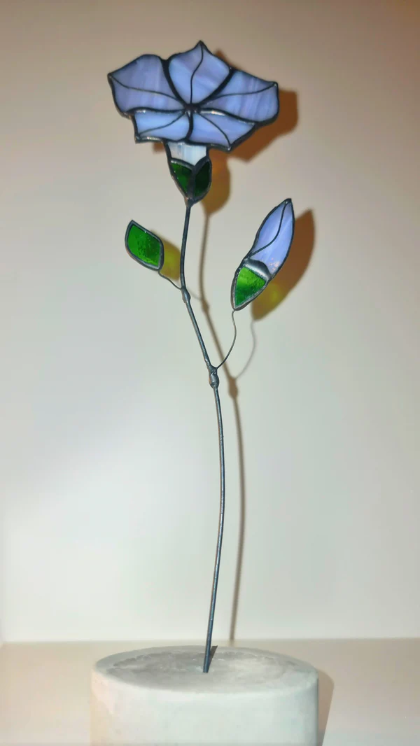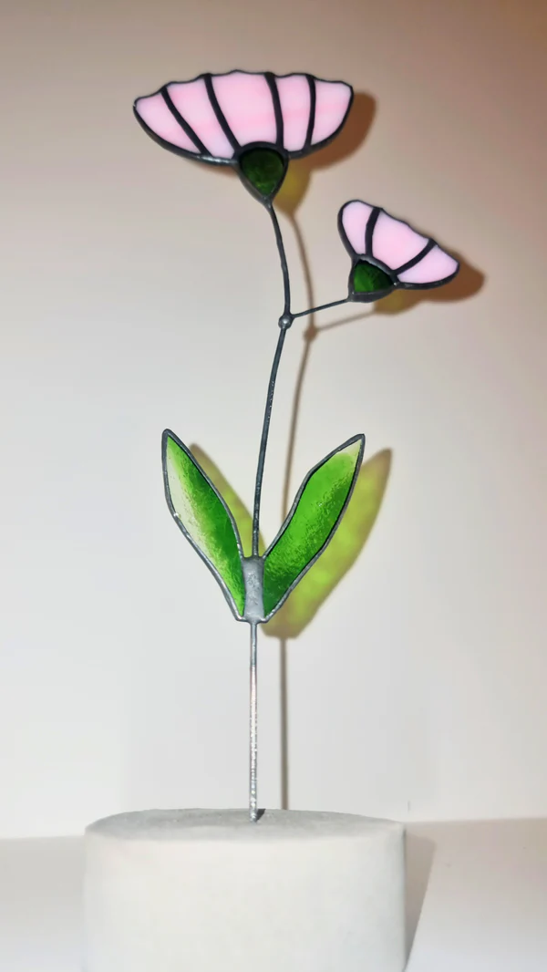 De workshop Zin in een dag vol kleur, glas en creativiteit? Tijdens deze dagsessie maak je een bloemboeket (3 stengels) of jouw unieke geboortebloem in glas. Je leert stap voor stap hoe je glas snijdt, soldeert en opbouwt tot een harmonieus geheel. Het resultaat is een persoonlijk unieke blikvanger die nooit zal verwelken. Je hoeft geen ervaring te hebben, enkel goesting om te creëren. Marika begeleidt je doorheen het proces, deelt tips en helpt je om de juiste kleuren en vormen te combineren. Wat is inbegrepen? ✔ Professionele begeleiding ✔ Gebruik van alle materialen (glas, koperfolie, gereedschap, soldeersel en bouten,...) ✔ Koffie of water ✔ Een gezellig ateliermoment vol inspiratie ✔ Een vaasje voor je boeket of een sierlijk voetje voor je geboortebloem 💶 €159 per persoon – inclusief materialen voor jouw unieke geboortebloem. We starten om 10u30, nemen een middagpauze en eindigen om 17u. Neem een gevulde brooddoos mee!